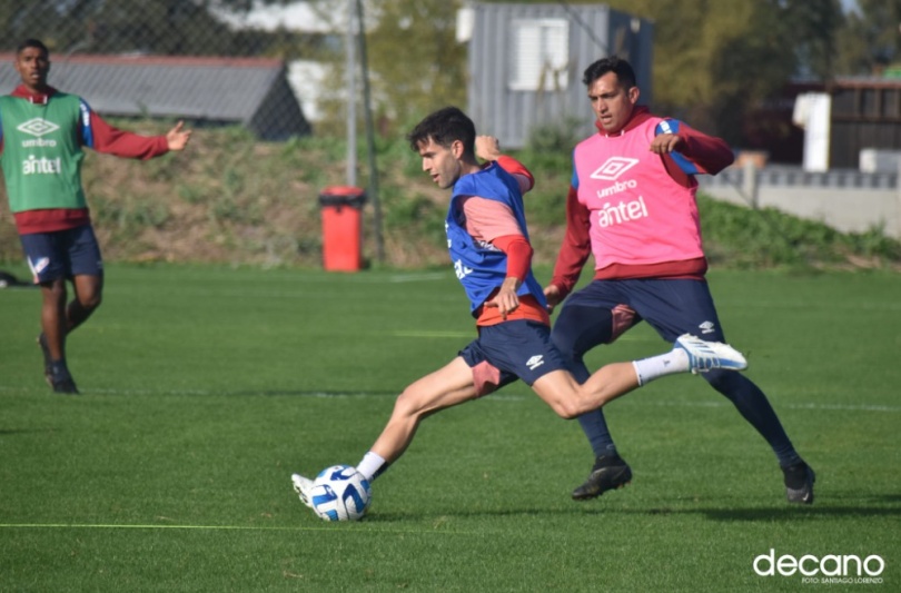 Mientras se realiza el paro de actividades, los jugadores del plantel de Nacional siguen practicando.