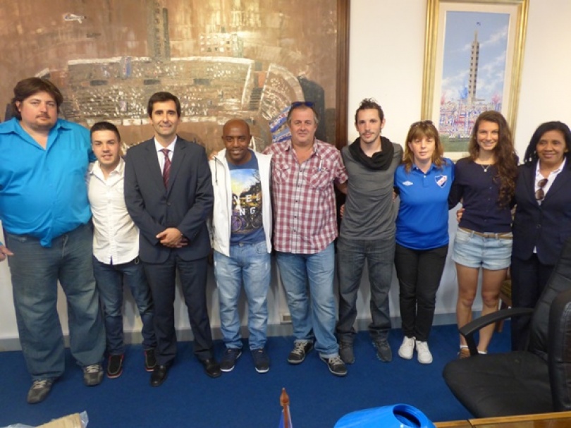 Eduardo Díaz y Andrés Berón, de los tricolores norteamericanos, junto a Gonzalo Orrico, integrante de filiales unidas albas, hicieron entrega de valiosos implementos de entrenamiento (pelotas, cintas, aros, pizarras, estacas, etc.) a representantes del fútbol femenino y en presencia del Gerente General de la institución, Lic. Martín De Castro.