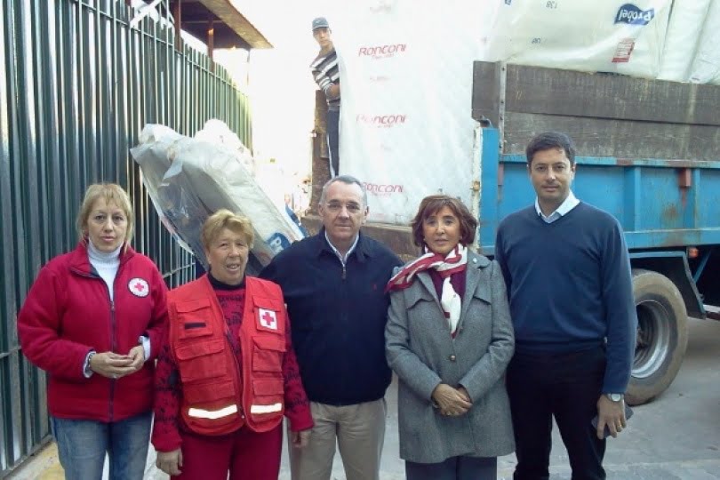 Ante responsables de la Cruz Roja, hicieron entrega del donativo el dirigente José López Rubio y el Jefe Comercial de la institución, Aldo Villar.
