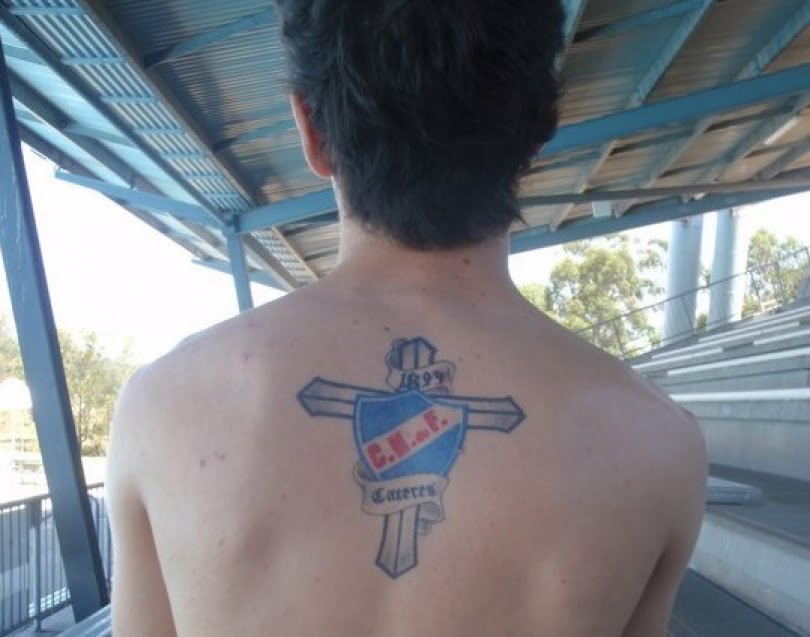 Anthony:  Llevo tatuado el escudo de Nacional en mi espalda y en el brazo tengo tatuado a Jesús en honor a mi abuelo que falleció hace año y medio.